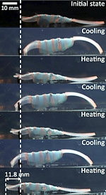 Forscher der Johns Hopkins University (JHU) präsentieren im Dezember 2022 einen gallertartigen Roboter, der wie ein Wurm kriecht, angetrieben von nichts weiter als Temperaturänderungen. Seine Fortbewegung beruht ausschließlich auf dem Quellen und Schrumpfen von Gel, wozu lediglich Temperaturänderungen im Bereich von 30 - 60°C nötig sind.