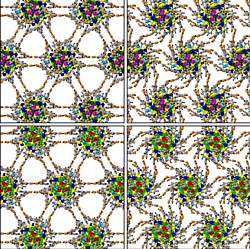 Die Studien zeigen, daß diese Übergitterstrukturen, die sich selbstorganisierend aus kleineren Clustern von Silbernanopartikeln und organischen Schutzmolekülen bilden, Schichten mit Wasserstoffbrückenbindungen zwischen den Komponenten formen, die als ,Scharniere, dienen um die Drehung zu erleichtern. Die Cluster mit Kernen von 44 Silberatomen werden durch 30 Ligandenmoleküle aus Mercaptobenzoesäure geschützt, die durch Schwefelatome an das Silber gebunden sind.