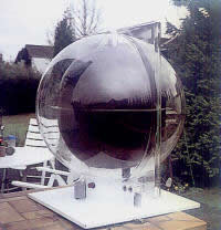 Auftraggeber ist Jannis Stefanakis, Geschäftsführer der Firma Solarenergie Stefanakis in Stadecken-Elsheim, die seit 1976 mobile halbkugel- und kugelförmige Sonnenkollektoren herstellt: geschwärzte Edelstahl- oder Kupfer-Tankabsorber, über die transparente Plexiglashauben gestülpt sind.