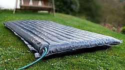 Unter dem Namen SolarStore kündigt die britische Firma Industrial Design-Consulting (IDC) im April 2008 ihre neueste Produkt-Entwicklung an: Einen doppelwandigen, aufblasbaren Sonnenkollektor nach dem Modell einer Luftmatratze, der bis zu 80°C erreicht. Die Frage ist, wieso hat es lange gedauert, bis jemand auf diese naheliegende Idee kam? Das 2 x 2 m große Teil mit einer Füllkapazität von 30 l Wasser, das zusammengefaltet in einen Rucksack paßt, kostet 150 € und armotisiert sich in nur 6 Monaten.