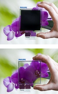 Bei den 17. International Display Workshops im Dezember 2010 in Fukuoka, Japan, wird ein von Philips Research entwickeltes e-Skin-Panel vorgestellt, das mit der Energie aus einem Mobiltelefon betrieben werden kann und einen Schritt zu einem energieautarken, intelligenten Fenster darstellt. Dank eines vom Holst Centre und der IMEC in Löwen, Belgien, entwickelten Hochfrequenz-Energieerntegeräts kann das Paneel ohne Batterie von schwarz auf transparent (und umgekehrt) umgestellt werden.