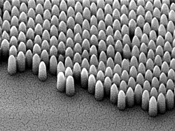 als 5 % reduziert. Die Nanostrukturen sind in einem Muster angeordnet,