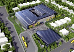 Laut SOM sind die 6.000 m2 der grundlegenden Form des Gebäudes sowie dessen Ausrichtung für Licht optimiert, sowohl für die Beleuchtung des Innenraums als auch für die optimale Nutzung der Photovoltaikanlage, die einen Großteil des Gebäudes bedecken wird. Das auf zwei Stockwerke begrenzte Hauptgebäude ist um einen Innenhof herum gebaut, was die verglaste Fläche erheblich vergrößert, mehr Tageslicht ins Innere läßt und so den Bedarf an elektrischer Beleuchtung reduziert. Außerdem erhält das Gebäude eine zusätzliche Südfassade, die eine weitere Fläche für kosteneffiziente Photovoltaikmodule bietet.