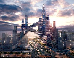 Die Aufgabe des Wettbewerbs bestand darin, drei Hochhäuser für einen 170 ha großen Finanzstadtbezirk zu entwerfen, einschließlich mehrerer kultureller Gebäude und einer Landschaft, die den neuen Bezirk mit der umliegenden Stadt verbindet. Der Entwurf bietet eine räumlich und programmatisch vielfältige Alternative zu den vorherrschenden Hochhausmonokulturen.