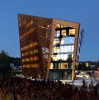 Das organisch geformte Gebäude mit drei Obergeschossen und einem partiellen Untergeschoß, das Anfang des Jahres zum Sieger eines Wettbewerbs gekürt wurde, besitzt eine CO2-absorbierende grüne Fassade und einen organischen Dachgarten und verfügt über eine zentrale Agora, in der die zentralen Einrichtungen, die Kantine und der Sportbereich untergebracht sind. Großzügige Treppenhäuser verbinden die beiden Gebäudeteile miteinander zu einer durchgehenden Landschaft.