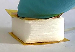 Der dabei entstehende weiße Holzschwamm besteht aus übereinanderliegenden, dünnen Zelluloseschichten, die sich einfach zusammenpressen lassen und sich dann wieder in ihre ursprüngliche Form ausdehnen. Ein Testwürfel aus diesem Material mit den Maßen 15 x 15 x 13,2 mm ist in der Lage, unter einem Druck von 45 kPa eine maximale Spannung von 0,87 V und einen Strom von 13,3 nA zu erzeugen. Zudem zeigt das Material eine erstaunliche Stabilität. 30 solcher Holzklötze, die parallel mit dem Körpergewicht eines Erwachsenen belastet werden, können ein einfaches LCD-Display zum Leuchten bringen.