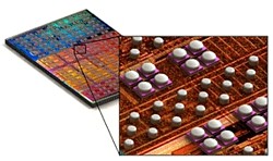 Das Unternehmen stellt einen Chip vor, der seine eigenen, eingebauten Peltier-Kühler hat. Die äußerst winzigen Elemente sitzen dabei so auf dem Chip, daß sie gezielt bestimmte ‚hot spots’ kühlen können (thin-film thermal bump technology).