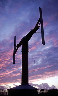 Wie man anhand der nebenstehenden Abbildung sieht, installiert DAF-Indal eine seiner Darrieus-Anlagen sogar auf einem Dach. Leider konnte ich bislang nicht herausfinden, wann und wo dieses Foto in Kanada aufgenommen – bzw. die Anlage installiert worden ist.