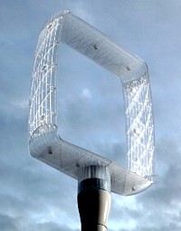 Neben der ästhetischen Seite (man kann die Farbe selber wählen) ist die umweltfreundliche Ausführung zu betonen – denn zum größten Teil besteht die Anlage aus recyclingfähigem Material. Die 2 kW Turbine mit 1,7 m Durchmesser startet selbständig bei einer Windgeschwindigkeit von 3 m/s, und eine Elektronik paßt die Rotorblätter automatisch dem Windaufkommen an.