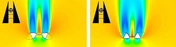 Außerdem ist durch die Form des Gebäudes gewährleistet, daß die Geschwindigkeit des Windes in der Mitte – wo sich die Rotoren drehen – größer ist als außen. Computersimulationen zeigen, daß der Wind dort aufs Doppelte beschleunigt wird.