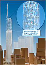 Auf die Spitze des Gebäudes wollte das Architekturbüro Skidmore, Owings & Merrill eine 150 m hohe offene Käfigkonstruktion setzen, in deren Innern sich (dann in rund 400 m Höhe) 30 Windrotoren drehen. Dabei sollten sich darunter befindliche Bauelemente den Wind so nach oben leiten, daß damit 20 % – 25 % des Gebäude-Energiebedarfs hätten gedeckt werden können.