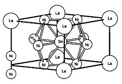 Eine Reihe weiterer Experimente bestätigt, daß die entstandenen Elektroden beim Einsatz in Nickel-Metallhydrid-Batterien (Ni-MHx), den gegenwärtig meist verbreiteten Akkus, eine höhere Speicherkapazität aufweisen und auch noch formstabiler sind. Die Legierung selbst basiert auf einer klassischen Formel bei Ni-MHx-Batterien, die aus einem quaderförmigen Gitter mit Lanthan-Atomen an den Ecken und Nickel auf der Innenseite besteht. Auf der Abbildung aus dem o.g. Patent ist das Schema der hexagonalen Gitterstruktur einer CaCu5-Legierung mit LaNi5 zu sehen. Da die Legierung kein teures Kobalt enthält, wie viele andere Ni-MHx-Batterien, und auch kein giftiges Cadmium, wie in Nickel-Cadmium-Akkus, gilt sie als preiswert und relativ umweltfreundlich.