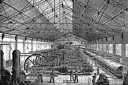 ein mit Wasserkraft betriebener Luftkompressor, wird vor allem im Bergbau