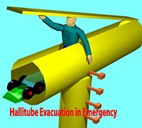 Hier liegen auch die Ursprünge des Systems, das in Notfällen zur Evakuierung dienen soll. Eine frühere – inzwischen als nicht umsetzbar verworfene – Version der Hallitubes funktionierte deshalb sogar ohne Karren. Dabei sollte der Fahrer einen Schutzanzug anziehen, sich in die geschmierte Röhre legen, sich an einem bewegenden Kabel festhalten und davon voranziehen lassen. Was sich nun nicht gerade bequem anhört. Berichte über Versuche oder gar eine Umsetzung gibt es bislang nicht.