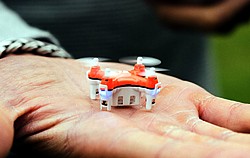 Ihre im Herbst 2013 gegründete Firma Extreme Fliers mit Sitz in London will einen kleinen, palmgroßen Quadrokopter namens Micro Drone 3.0 auf den Markt bringen, der nur 56 g wiegt (mit Kamera: 71 g) und die Maße 145 x 55 x 50 mm hat. In dem kleinem Raum ist allerdings viel Technik verstaut: eine selbststabilisierte 720p-HD-Kamera, ein Mikrofon, ein 450 mAh Li-Akku, eine ARM-CPU samt WLAN-Chip sowie jede Menge Sensoren, mit denen sich die kleine Drohne auch bei Windgeschwindigkeiten von bis zu 45 km/h ruhig in der Luft halten kann.