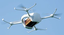 Im April 2015 reicht die Amazon Technologies Inc. einen Patentantrag ein, in welchem ein unbemanntes Fluggerät UAV 200 mit acht Rotoren beschrieben wird, das selbständig Waren ausliefern, Routen festlegen und mit anderen seiner Art kommunizieren kann (US-Nr. 20150120094). Damit soll der Lieferprozeß unabhängig vom Menschen gemacht werden. Und indem die Drohne z.B. die von dem Smartphone des Kunden aus gesendeten aktuellen Standortdaten stets abgleicht, kann die Sendung an den Besteller ausgeliefert werden, egal wo dieser sich gerade befindet. Auch eine Abholung bei Büchereien, Einzelhändlern oder Verpackungsanlagen ist möglich.
