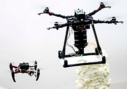 Statt einer einzigen großen Drohne sind im Körper der Mutterschiffsdrohne vier wesentlich kleinere Drohnen untergebracht, die aufgrund ihrer kompakten Größe auch durch enge und sonst unzugängliche Räume zwischen eingestürzten Gebäuden navigieren können, um Überlebende zu lokalisieren.