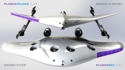 Bis es soweit ist, zeigt er detaillierte Designs der Vorserien-UAVs PlasmaFalcon und PlasmaRay Mini für ISR- und Logistik- oder Pakettransport-Missionen. Beide Systeme mit einer Spannweite von 1,11 m werden mit 12 EDF-Düsen und bürstenlosen Elektromotoren ausgestattet und sollen ihre ersten öffentlichen Flüge im Jahr 2021 absolvieren. Der Markteintritt ist für Anfang 2022 geplant.