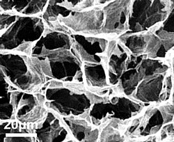 Die Basis des porösen Materials, das zu mehr als 99 % aus Luft besteht, sehr stark dämmt und extrem leicht und elastisch ist, besteht aus Bornitrid, eine Bor-Stickstoff-Verbindung, die wabenförmige Strukturen bilden kann. Diese schon sehr stabilen, flachen Strukturen werden in ein dreidimensionales, netzartiges Gebilde eingebunden, wodurch sich das Material sehr gut plastisch verformen läßt.
